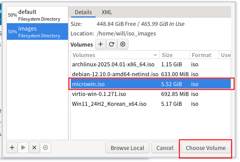 자 그럼, 해당 iso 파일들 중 설치할 항목을 선택하고 choose volume을 눌러 다음으로 진행한다.