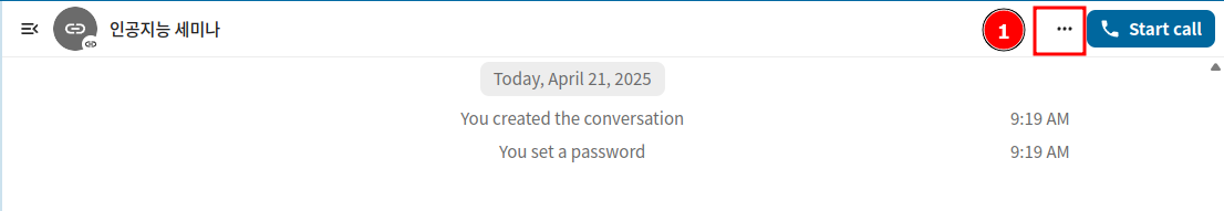 다음 Step에서 회의 링크를 복사하는 방법을 다시 설명하긴 하지만, 여기서 곧바로 Copy conversation link를 통해 미리 링크를 복사하고 공유해도 된다.